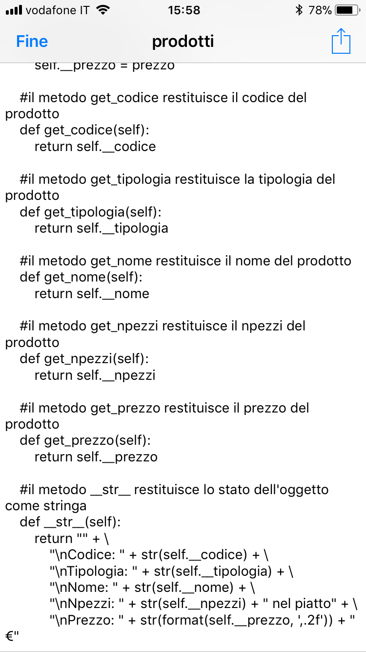 scusate per il disturbo. Ho consultato più volte questo forum, trovando sempre le risposte ai miei problemi rigardo il codice che sto scrivendo per un esame. Come manuale ho consultato 'Introduzione a Python', dove però non c'è alcun riferimento a metaclassi etc. Ora però, per l'esame, devo scrivere un codice che mi permetta di creare delle ordizioni in un ristorante dove devo suddividere le ordinazioni in base al numero dei tavoli. Ho creato quindi una classe "ordinazioni" che vorrei però abbinare ad un altra classe che gestisca il numero dei tavoli, credo quindi Classi all'interno di altre Classi. Volevo sapere se il mio ragionamento fosse corretto, e inoltre dove poter trovare alcune delucidazioni o proprio listati simili alle funzioni che vorrei inserire nel mio codice. Il punto della traccia che non riesco a programmare: "Cercare un ordine (inserendo il numero del tavolo) visualizzando le informazioni relative a tipologia di sushi ordinato e costo totale dell'ordinazione." Grazie in anticipo, ciaomondo321 |