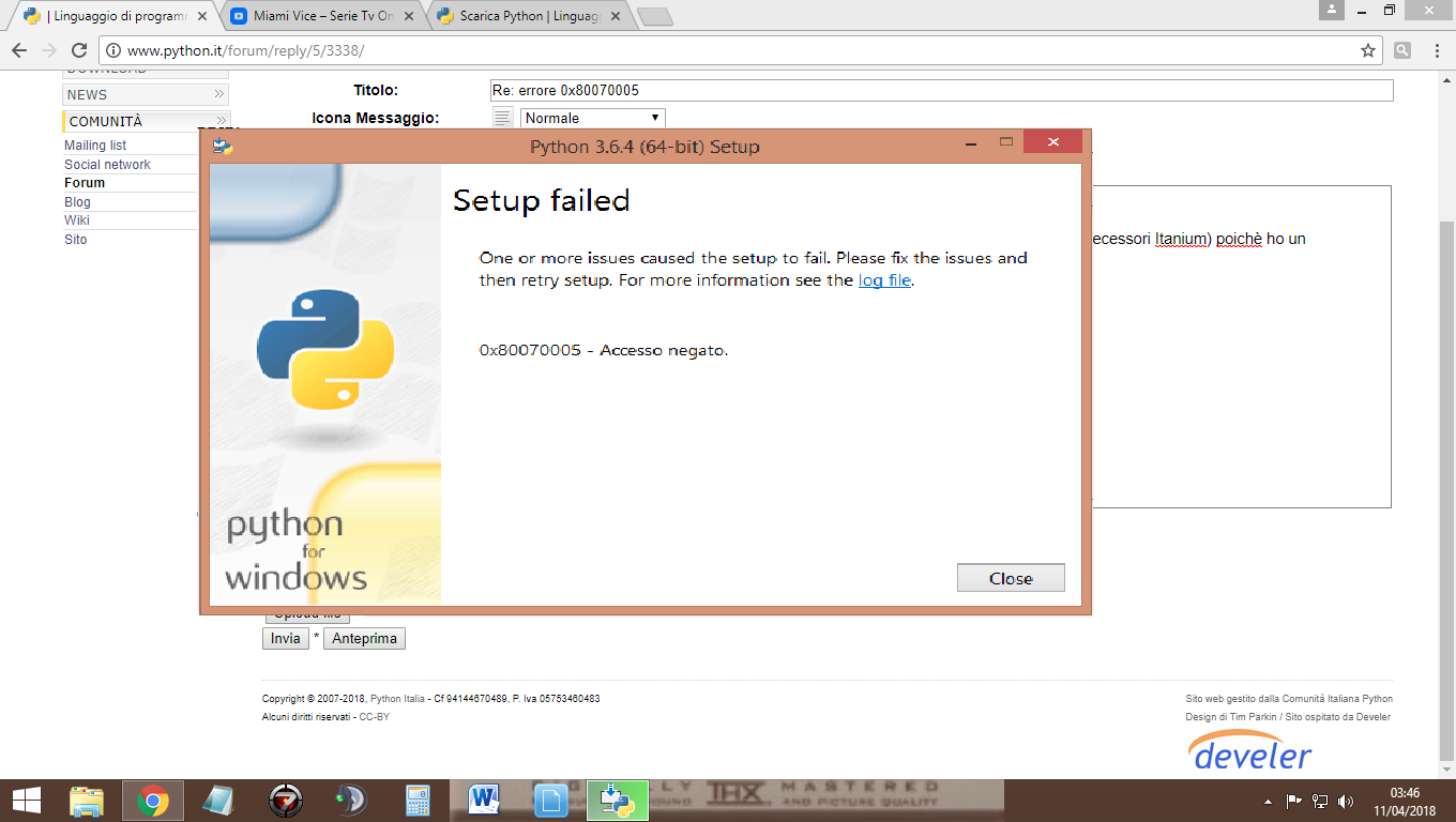 2018-04-11 03:57:49 - Re: errore 0x80070005