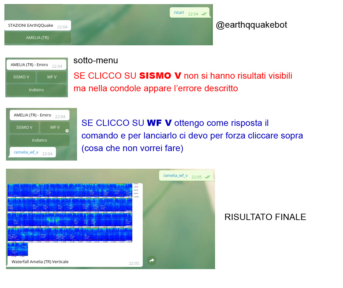 WF V, lancia /amelia_wf_v (con la / davanti) che il software interpreta come stringa e la scrive pari pari come risposta. Ovviamente, essendo un comando, viene scritto in BLU da Telegram ed è cliccabile. Cliccandoci sopra viene eseguito correttamente.