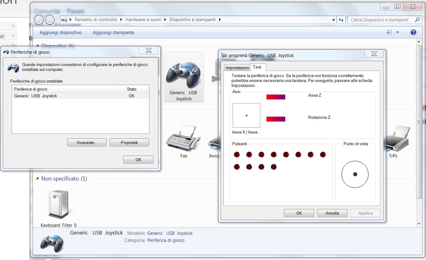 ho un controller esterno USB (tipo controller playstation), vorrei utilizzarlo interfacciarmi con arduino. Per la parte di arduino sono a posto, tramite la comunicazione seriale provvedo ad inviare un comando da python ad arduino che di conseguenza farà accadere qualcosa. Il mio problema è prima, ovvero non so come fare in modo di dire a python di leggere quali sono i tasti premuti del controller. Vorrei fare in modo che alla pressione di un tasto venga inviato un comando seriale. A livello di programmazione non so come muovermi... E' un controller USB e da pannello di controllo di windows riesco a vedere quali sono i tasti premuti eccc. In allegato immagine esplicativa. Grazie mille --- Ultima modifica di edo01 in data 2021-02-09 14:30:15 --- |
