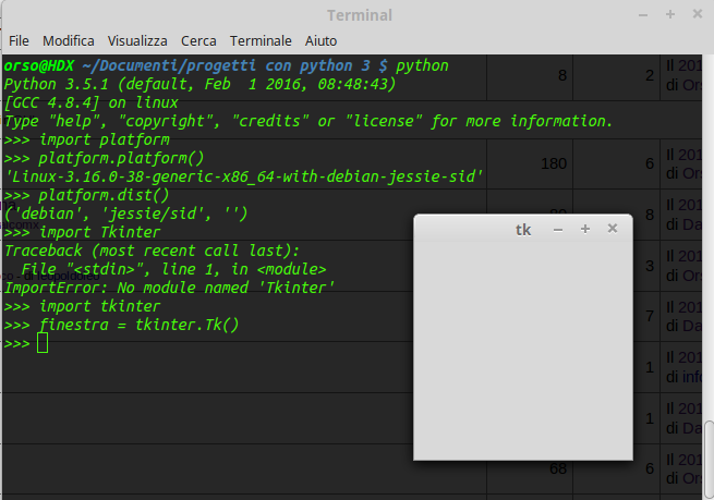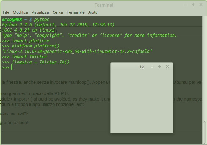 e visualizza immediatamente la finestra, anche senza invocare mainloop(). Appena torno a casa voglio provare con Ubuntu per verificare il comportamento.